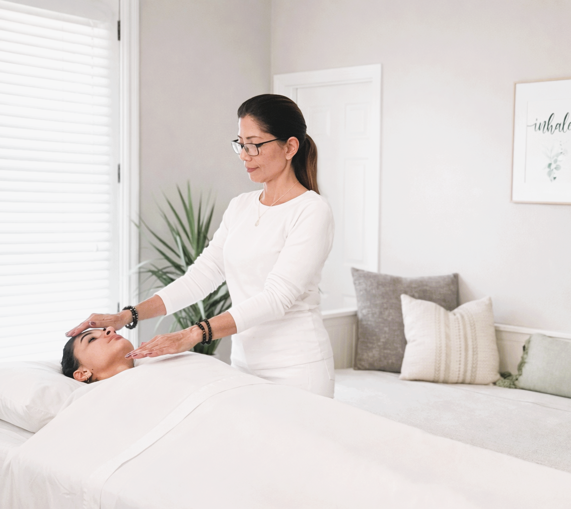 Reiki is a traditional Japanese energy healing practice in which a practitioner gently hovers their hands over specific areas of the client's body, channeling universal life force energy to support the body's natural healing abilities. Reiki helps to clear energetic blockages, restore the energy flow, and enhance both physical and emotional well-being.